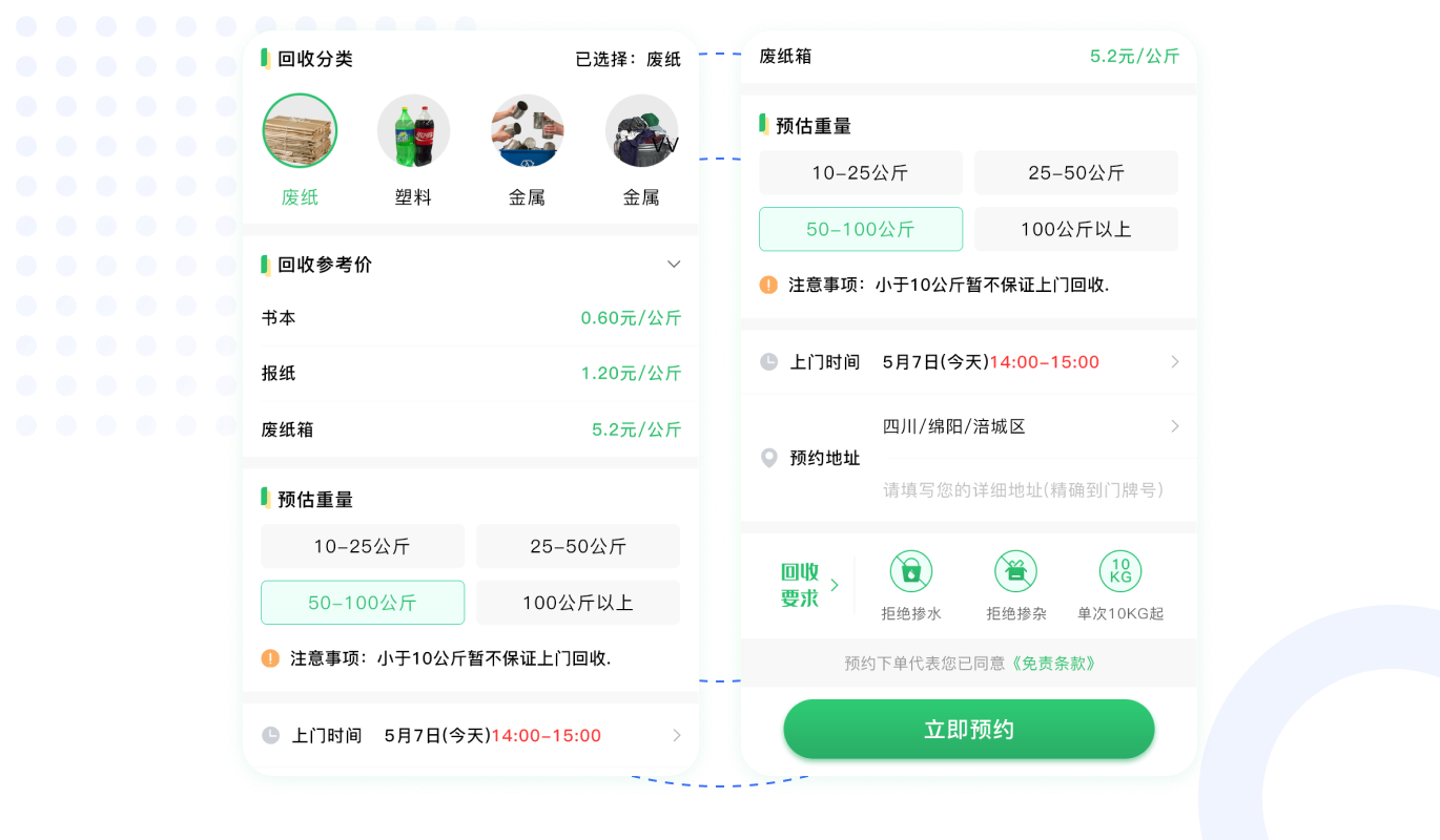 用戶一鍵下單回收,系統(tǒng)自動(dòng)派單,回收員上門(mén)回收